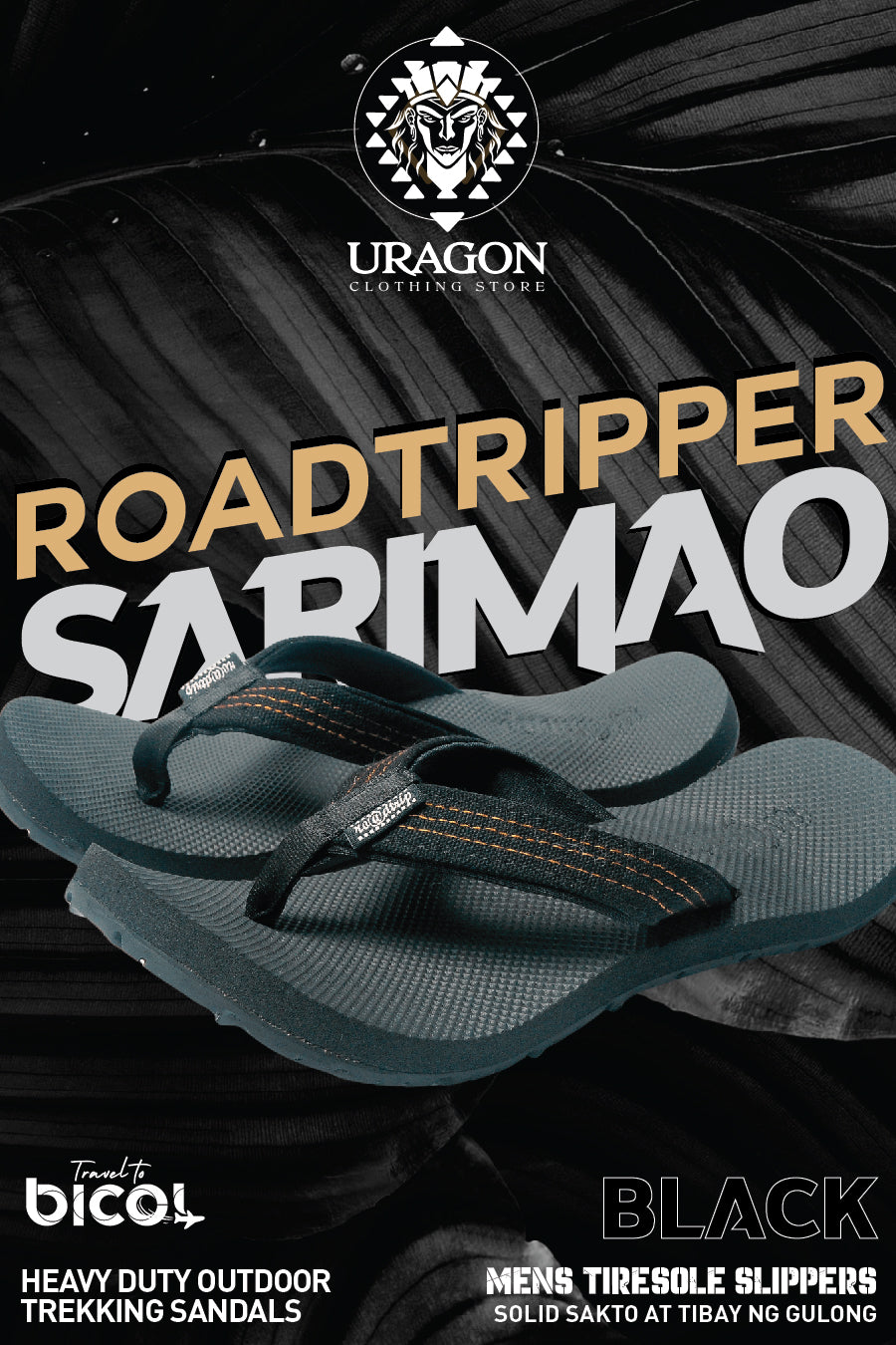 Uragon Lagalag Mens Tiresole Slippers Black